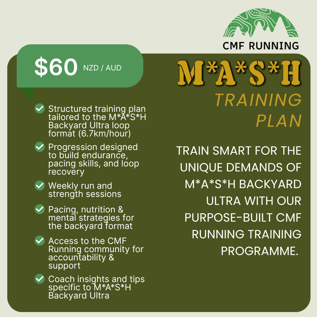 Train smart for the unique demands of M*A*S*H Backyard Ultra with our purpose-built CMF Running training programme.